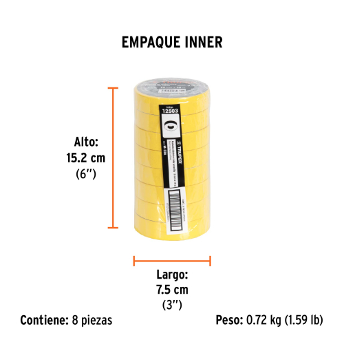 CINTA DE AISLAR DE 18 M X 19 MM, AMARILLA, TRUPER 12503
