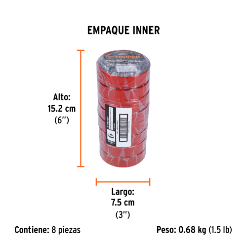 CINTA DE AISLAR DE 18 M X 19 MM, ROJA, TRUPER 12504