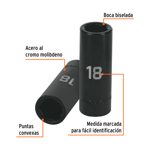 DADO TUBULAR HEXAGONAL ENCASTRE 1/2″ DE IMPACTO DE 18 MM, TRUPER 12430