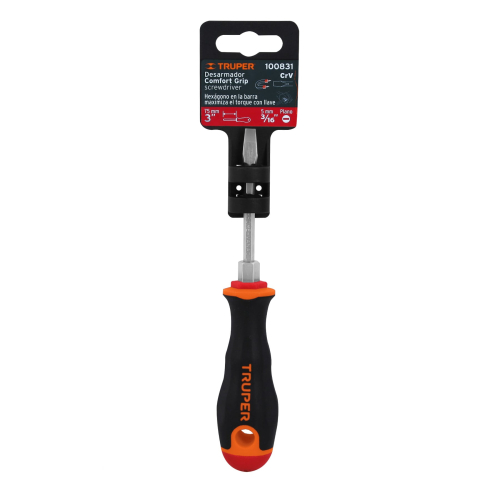 DESARMADOR PLANO 3/16″ X 3″ MANGO COMFORT GRIP, TRUPER 100831