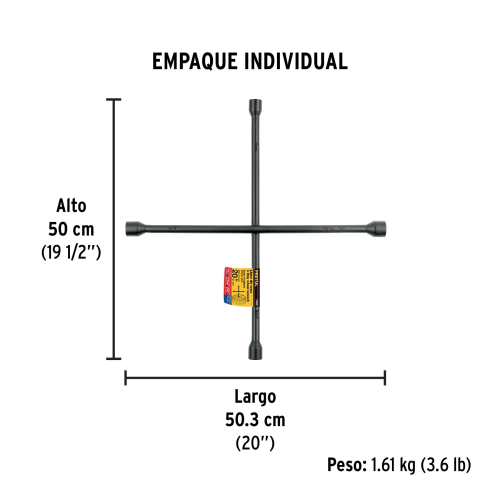 • Cuerpo de acero forjado • Para remover tuercas y birlos de llantas en automóviles y camionetas • Tamaño de bocas 17 mm, 3/4″, 13/16″, 7/8″